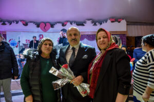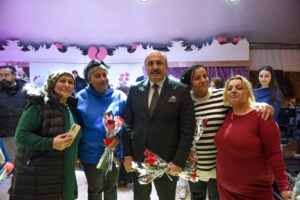 Başkan Arslan, sanatçılar Cemal Bilgin ve Ilgaz’a plaket takdim ederken, eşi Nebahat Arslan ve kadınlarla birlikte pasta keserek bu özel günü taçlandırdı. Etkinlikte yemek ikramı da yapıldı.