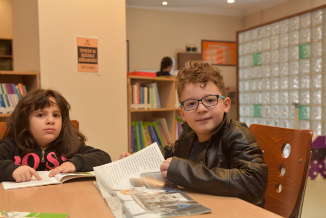 Minik misafirlerin neşesiyle dolan kütüphane, gün boyunca hareketli anlara sahne oldu.