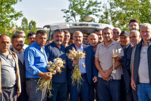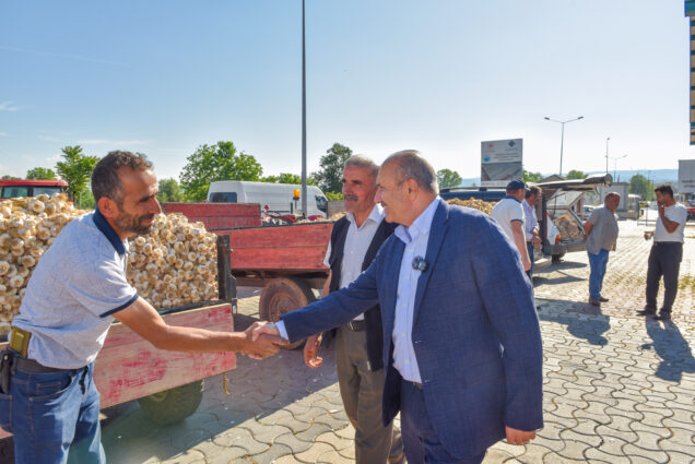 Sabah saatlerinde pazarı ziyaret eden Başkan Arslan, üreticilerle bir araya gelerek hem sohbet etti, hem de sarımsak alışverişi yapan vatandaşlarla bir süre görüştü. Pazarın ilk sarımsak satışına da bizzat katılan Başkan Arslan, orta boy sarımsağın kilosunu 140 TL’den satılmasına aracılık etti.