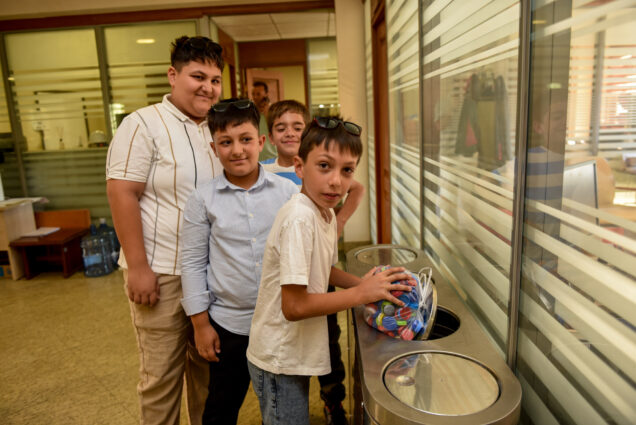Minikler, topladıkları plastik kapakları geri dönüşüm için Taşköprü Belediye Başkanlığı’na getirerek, atık toplama noktasına teslim etti.