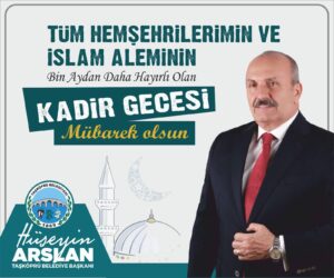 Başı rahmet, ortası mağfiret, sonu ise cehennem azabından kurtuluş müjdesiyle dolu olan mübarek Ramazan ayının en kıymetli zamanlarından birine; bin aydan daha hayırlı olduğu müjdelenen Kadir Gecesi’ne ulaşmanın huzur ve mutluluğunu yaşıyoruz. Duaların semaya yükseldiği, gönüllerin arındığı bu mübarek gecenin; birlik ve beraberliğimizi güçlendirmesini, gönüllerimize huzur ve bereket getirmesini temenni ediyorum. Bu vesileyle kıymetli Taşköprülü hemşehrilerimin ve tüm İslam âleminin Kadir Gecesi’ni en içten dileklerimle tebrik ediyor; bu mübarek gecenin tüm insanlığa hayırlar getirmesini Cenab-ı Mevla’dan niyaz ediyorum.
